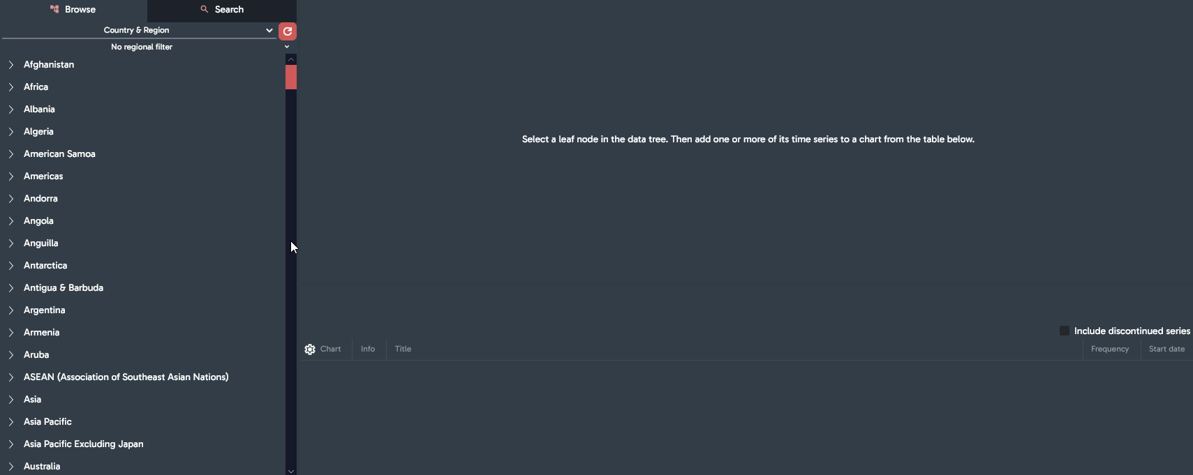 After selecting series chart appear automatically in the upper section.