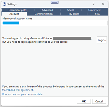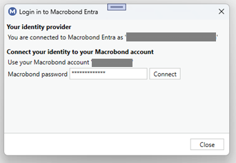 If your accounts are not connected, you will be prompted for your Macrobond account password. It might be filled in already if you have logged in on this computer before your account was configured to use MS Entra.