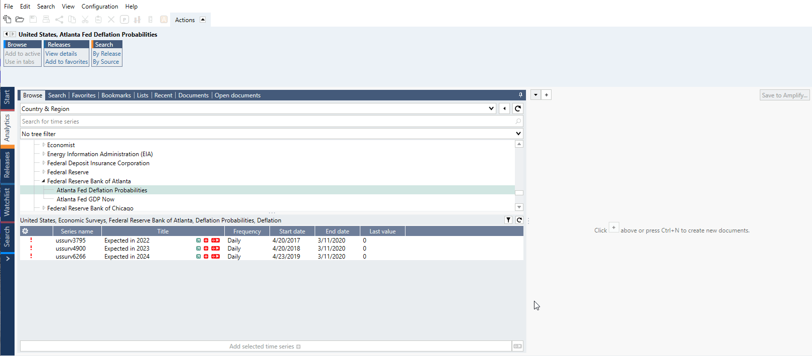 If on Series list you have a discontinued series, the yellow bar will appear above such document. When you click on it new window will appear with information (if provided by the source) why series was discontinued and possible replacement.